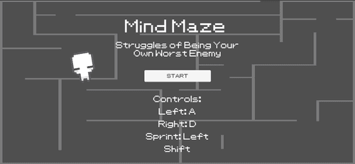 Mind Maze is a 2D platforming game which revolves around a character that goes through levels focused on a mental health disorder.
